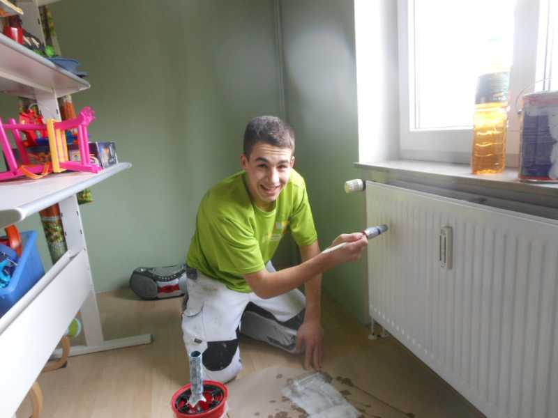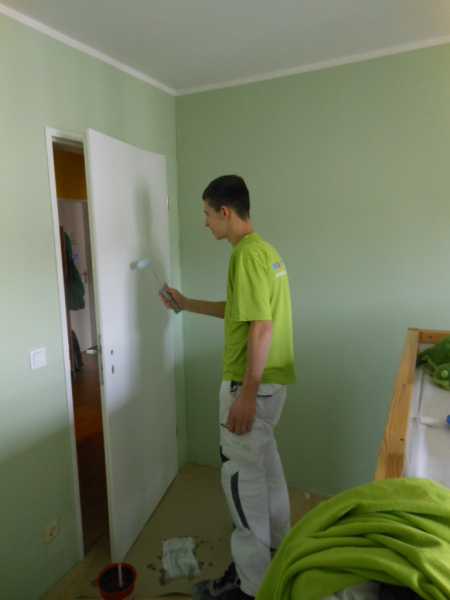 Das Zimmer ist renoviert! Der Farbton wurde gefunden, die Decke und alle Wände bekamen ein neues Outfit. Tür, Fußleiste und Heizkörper sind lackiert. Marlon größter Wunsch: „Dinos auf die Wand“.