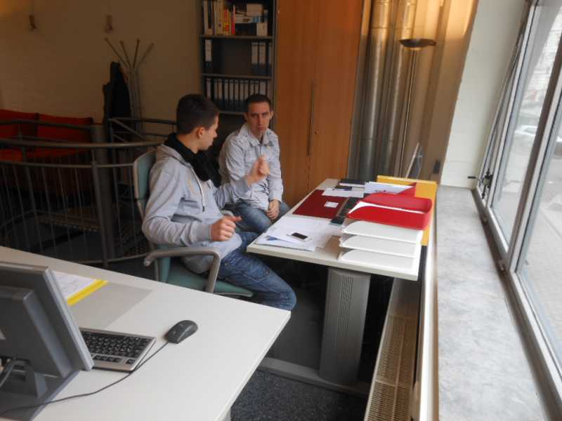 „Phase 1“: Timo (1. Ausbildungsjahr) renoviert das Zimmer von Marlon im Kinderheim Pinnasberg. Zuerst steht eine Besichtigung im Objekt mit dem Heimleiter an. Unser Azubi Timo kontrolliert den Untergrund, nimmt Masse der Decke und Wände und notiert sich alle wichtigen Informationen. Timos weiterer Tag heute findet im Büro statt. Es werden die Grundlagen unserer Kalkulation erklärt. Damit frühzeitig das Verständnis zur wirtschaftlichen Umsetzung der Aufträge entsteht.